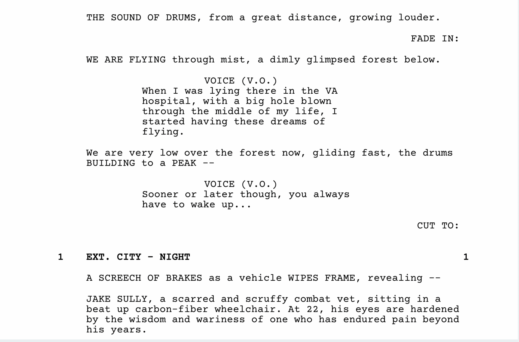 Première page du scénario d’Avatar