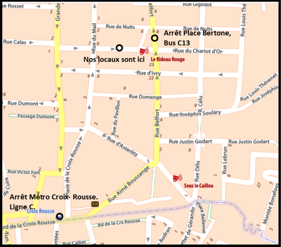 Vous prenez le métro et vous vous arrêtez à la station la plus proche de nos locaux : Arrêt Croix-Rousse (ligne C, orange). Nos locaux sont à 10 minutes à pied.